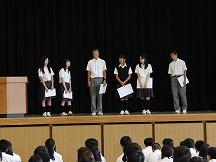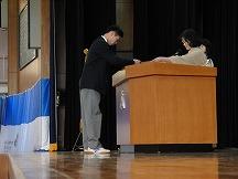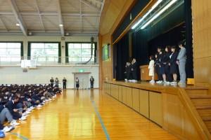 皆勤賞受賞者が呼名され起立しました。皆勤賞の表彰後は生徒会功労賞の表彰が続きました。
