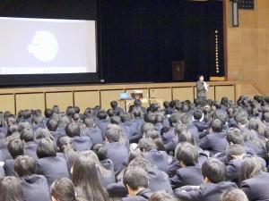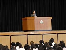 「栄光に近道なし」の言葉をひいて、生徒たちに熱いエールを送ってくださった講演でした。