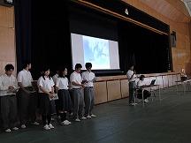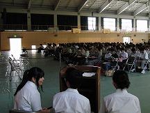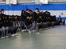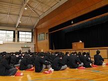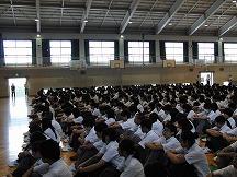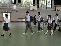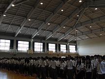 新入生が拍手の中、県宝生になるために体育館に入場です。