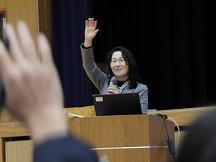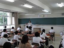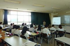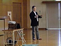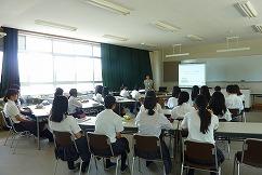 高校では陸上競技、大学ではアメリカンフットボールと、スポーツに熱心に取り組まれた中島氏。乳児から高齢者までを対象とした多岐にわたる業務について、ゲーム感覚の活動を交えてわかりやすくご説明くださり、高齢社会で健康を維持することの重要性を教えてくださいました。さらに、ご自身とご子息の経験談を基に、視野を拡げて自分の可能性を見いだすことが、いずれ社会に出るために重要なことであると、述べられました。