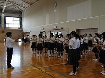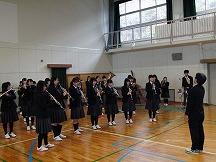 吹奏楽部による演奏にあわせて校歌斉唱で終了。