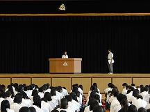 学校長の式辞が始まりました。新入生が真剣に聴き入ります