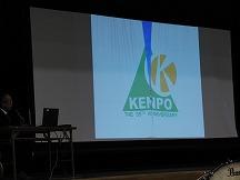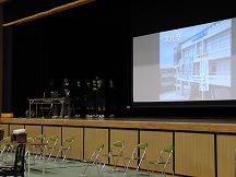 スクリーンを使った説明が始まりました。舞台の上に何かが置かれています。