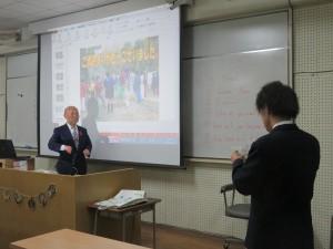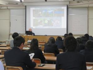 2日目(3月9日)は、日本CFA協会から青砥政孝さんをお迎えして、「これからの日本を担うみなさんへ 」~グローバルな人材とは~ と題してご講演いただきました。CFAとは公認財務アナリストのことですが、難解な財務関係の話ではなく財務アナリストの視点から見た、これからの日本を担うグローバルな人材とは何かということについて分かりやすくお話ししていただきました。