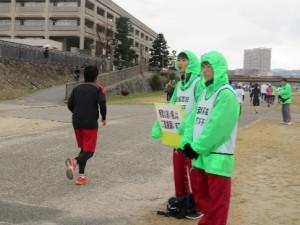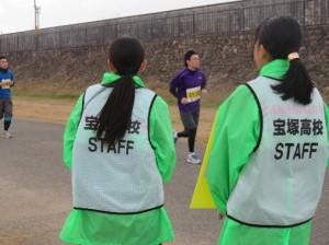 宝塚ハーフマラソンの大会運営にに県宝生がボランティアとして参加