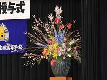 第52回生、17703人目から 17975人目の卒業生が本校を巣立ちました。豪華な生け花が壇上を飾ります。