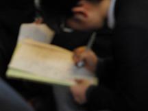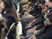 学校長が式辞を述べて、卒業生が真剣に聞き入ります。