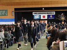 吹奏楽部の演奏する威風堂々の曲で、卒業生が入場します。