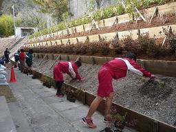 そこへ、本校の緑化委員の皆さんが植栽をしました。