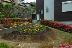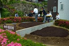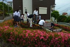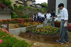 5月31日(金)放課後、正門から少し下ったところにある「ゆずり葉花壇」の花の植え替えを、2年生の緑化委員が行いました。