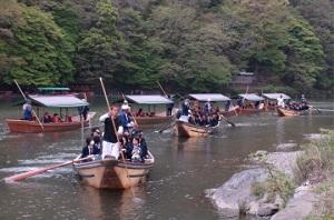 3年生の校外学習は、京都で、保津川下りと嵐山観光です。宝塚をバスで出発し、まずは保津川下り。当日はあいにくの雨模様。激しく雨が降る時間帯もありましたが、川下りの時間帯は奇跡的に晴れました。水しぶきに歓声が上がる中、船頭さんの巧みな操船で無事嵐山へ。渡月橋、天龍寺などを巡りました。