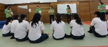 実際の授業をライブで見学することから始まり、体育館において学校概要の説明等に引き続き、部活動の見学まで盛り沢山の内容でした。