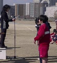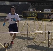 1位の選手のゴールです。男子は2年生 前中直人君、タイムは34分54秒、女子は2年生 山中里紗さん、18分40秒でした。男女共に昨年を上回るタイムでゴールできました。