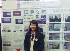 すでにホームページでお知らせしていましたが、去る1月30日(日)に神戸ハーバーランドにて、県教育委員会主催平成27年度高等学校魅力・特色づくり活動発表会が行われました。県内の30校以上が参加し、本校からは2・3年生8名がポスターセッションを行いました。写真が到着しましたので、ご紹介します。
