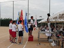 選手団入場、ブロック旗が勢ぞろい、選手宣誓です。