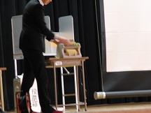 解説を受けながら代表者による模擬投票体験が行われました。
