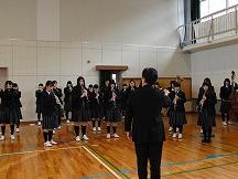 吹奏楽部による演奏にあわせて校歌斉唱で終了。