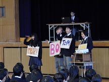 生徒会の登場です。順番に楽しい県宝ライフについてスピーチします。