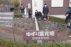 逆瀬台2丁目にある『ゆずり葉花壇』(宝塚高校で管理運営中)で植え替え作業をいたしました。
