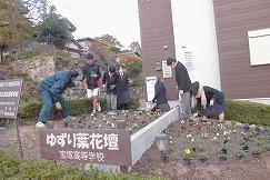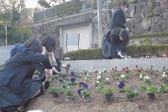 本校の緑化委員の手により、パンジーとビオラをメインに植え替えられました。
