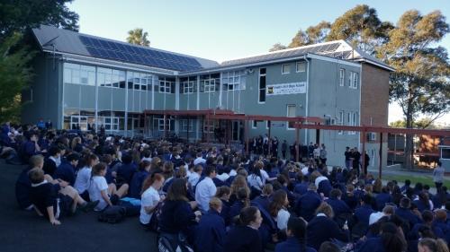 毎週月曜日の朝は、School assembly(全校集会)があり、ホストと一緒に参加しました。。
