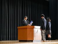 生徒を代表し、生徒会の保健美化幹事と保健委員長が生徒を代表して受け取りました。