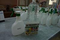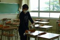 生徒の皆さんが安心して学校生活を再開できるように、消毒液を使って清掃をを行っています。