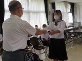 その後、生徒集会を行い、部活動、読書感想文の優秀者の表彰伝達などを行いました。