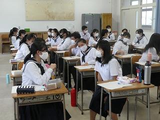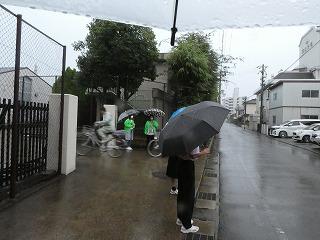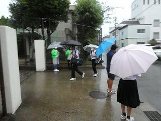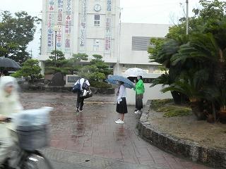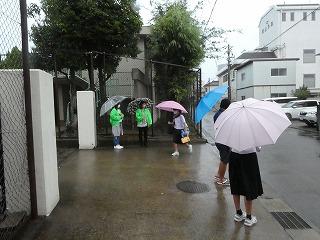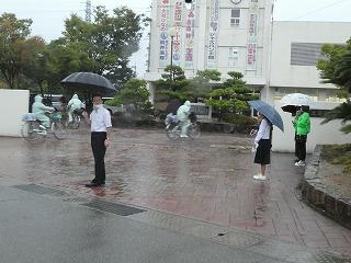 雨だったので安全を期して、普段は自転車での登校を電車、徒歩に変えて登校する生徒もいました。元気のよいあいさつが、できていました。