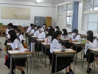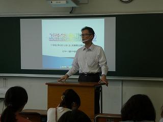 9月3日 7校時に、1年生は、LHRで学年進路ガイダンスを行い、芸能関係者を育成されている竹下しんいち様から、「夢を持とう、夢を実現しよう」「やる気が大切だ」「教えていただくことへの感謝の気持ちを忘れるな」とお話をいただきました。竹下しんいち様は、以前に俳優 菅原文太さんの付き人をつとめ、現在は芸能関係の専門学校の講師をされています。