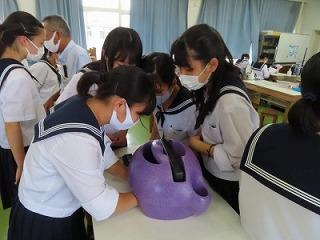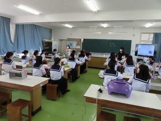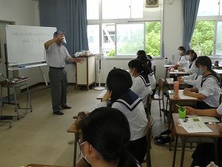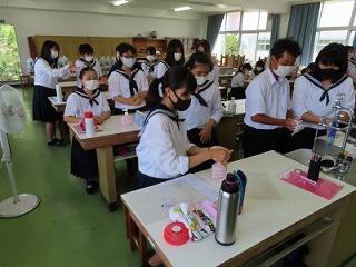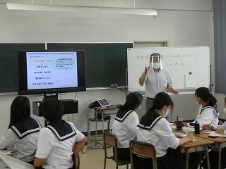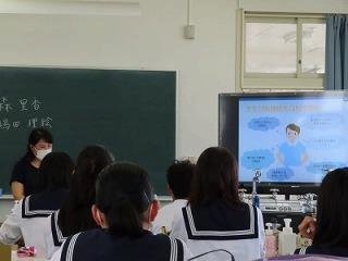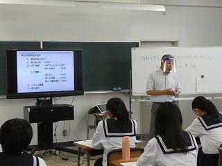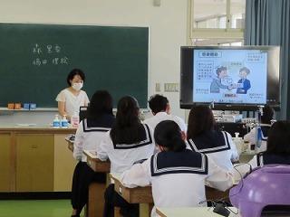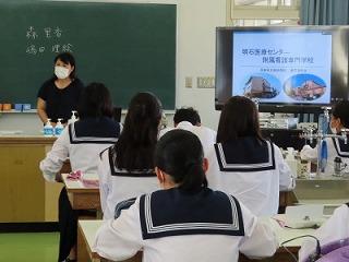 2年生の看護類型の生徒が選択している「看護医療基礎」(学校設定教科)で明石医療センター附属看護専門学校の森里香 様と嶋田理絵 様より、「看護職を目指すには・専門学校で学ぶこと」と「感染予防について」の実習を交えた講義をしていただきました。