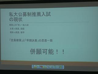 9月12日 10:00より90分程度の時間で、最新の進学に関する情報提供を 1学年の保護者の皆様に行い、熱心に聞いていただきました。
