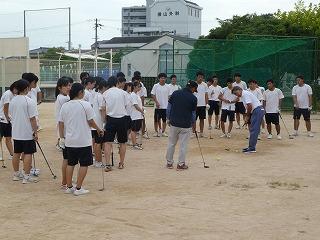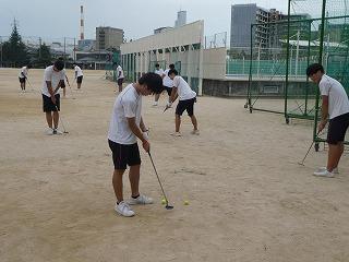 生徒たちは、はじめてのゴルフで、ボールが打ち方で高く飛んだり、横に転ぶだけだったりとコントロールする難しさを感じて、集中したスイングに取り組んでいました。