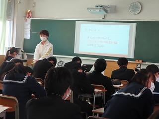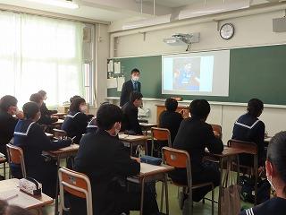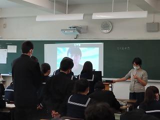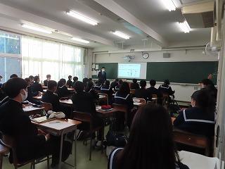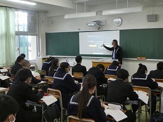 11月20日(木)のLHRの時間に、「障がい者スポーツの楽しみ方と工夫」という演題で、車いすバスケットボール「チームWeB」代表の小嶋 明様による人権学習の講演会を行いました。2グループに分けて講演をしていただき、分散を図りました。