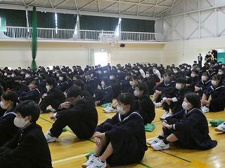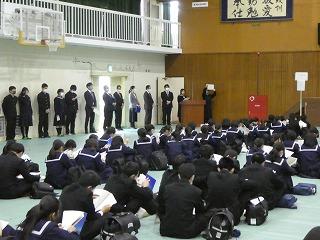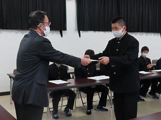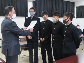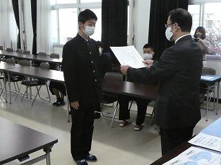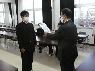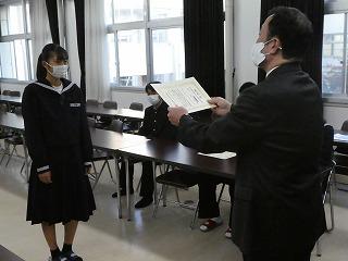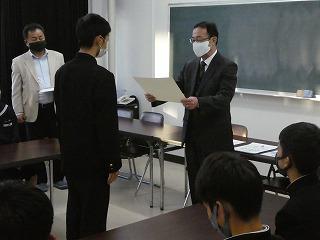 生徒集会終了後に、表彰伝達式を会議室で行いました。
