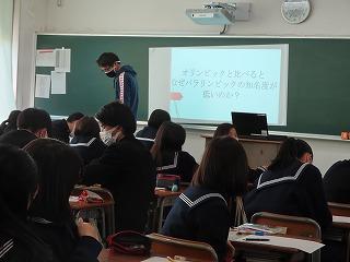 スライドやビデオを通して障がい者スポーツについて学習し、障がい者にとっても、健常者にとってもスポーツをすることの意義は変わらないことの理解を深めました。