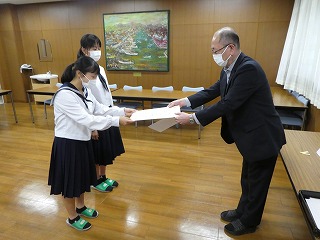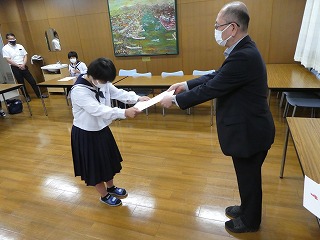 放課後に表彰授与式を応接室で行いました。受賞者は、以下のとおりです。