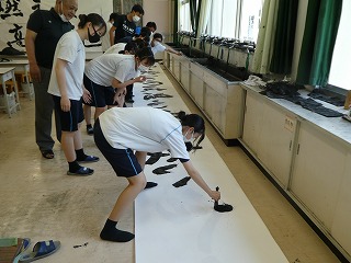 6/10 3年生の選択書道で、1文字ずつ思いを込めて大きく書き上げました。
