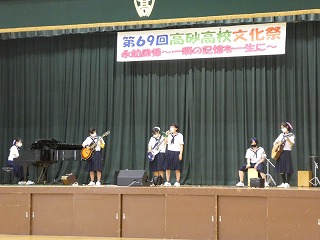今年度の文化祭は、コロナ感染防止を鑑みて、保護者の方は、自粛願い、校内の関係者(教職員・生徒)で行います。また、3密を避けるため、1学年、2学年は、ステージ発表を、ホームルーム教室でのオンライン鑑賞として、準備を進めています。模擬店での取扱商品は、制限しました。