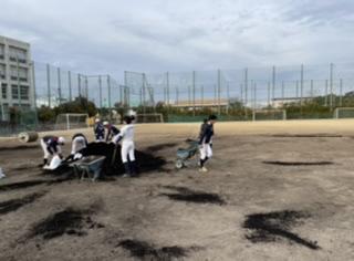 学年末考査最終日に環境整備を行いました。3月から対外試合や春季大会が始まるので、そこで良い結果が残せるように備えていきます。また、本日は黒土も入れ直しました。この環境でできることに感謝し、これからも練習に励んでいきます。