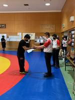 夏休みも後半戦を迎えた8月17~20日に、滋賀県は大津市「ウカルちゃんアリーナ」で全国グレコローマン選手権が開催されました。兵庫県の代表として本校からは、51㎏級野崎生穏(2年)、55㎏級米澤太朗(2年)、65㎏級西村量伍(2年)、80㎏級大西悠(2年)、92㎏級春成飛翔(3年)、125㎏級古段達基(1年)の6人が出場しました。激しい闘いの末、春成選手(3年)・米澤選手(2年)が5位入賞いたしました。