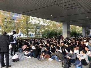 今から1組(理)2.3組と1組(文)4.5.6組に分かれて宮古空港へ向かいます。