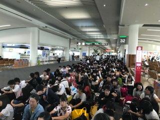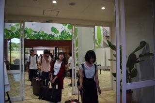 那覇空港へ着きました。天候もとても良く、飛行機の中からはエメラルドグリーンの海を見ることができました。