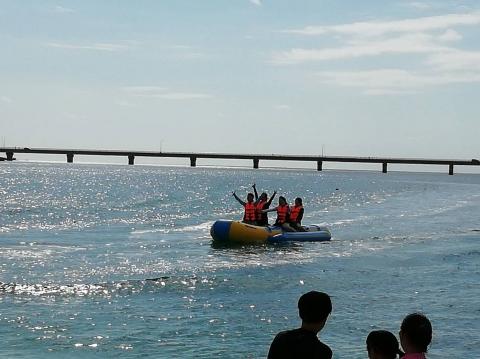 落ちそうになったけど、スリルがあって楽しかった!(バナナボート)