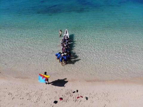 雨も止み、晴れ間も見えてくる中、ペーロン体験を行いました。波も比較的穏やかで、漕いでいると気持ちがいいです。