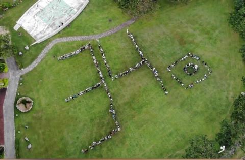 本日もラジオ体操から始まり、その後、ドローンを使って人文字を作成しました。