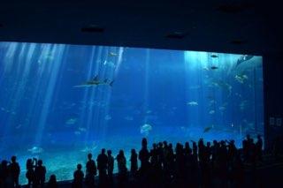 美ら海水族館では、大迫力の水槽の前で写真をたくさん撮りました。