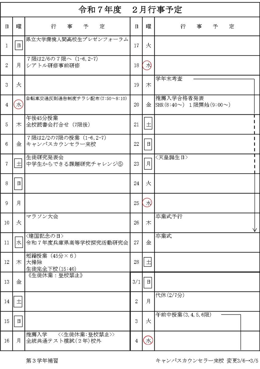 令和7年度2月 行事予定