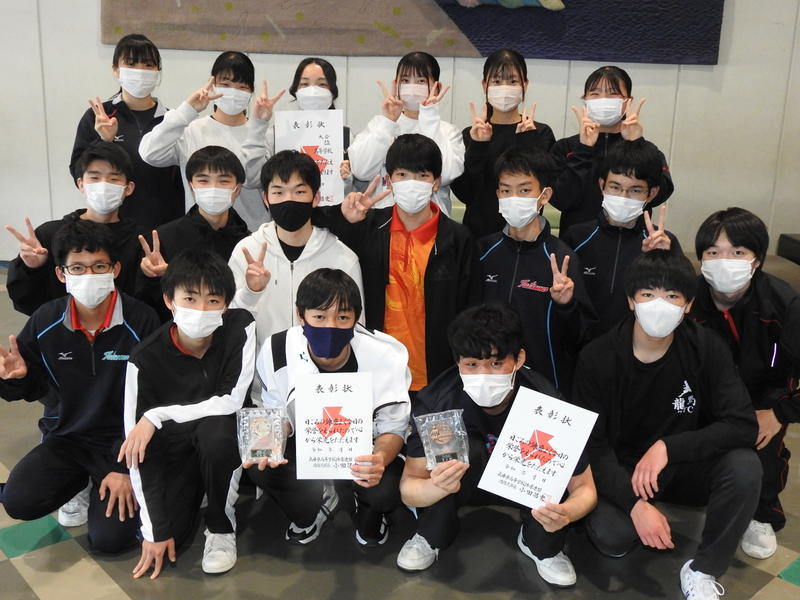 3年生は国体西播予選を通過した生徒以外は今大会で引退となりますが、シード権を失っていたが地区大会で3位になった男子、昨年新人戦時には2年生1名となった女子も新入生中心のチームで県大会出場を果たしてくれました。