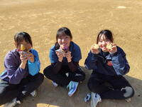 練習後、生徒たちは心待ちにしていた焼き芋を前に満面の笑みでした。